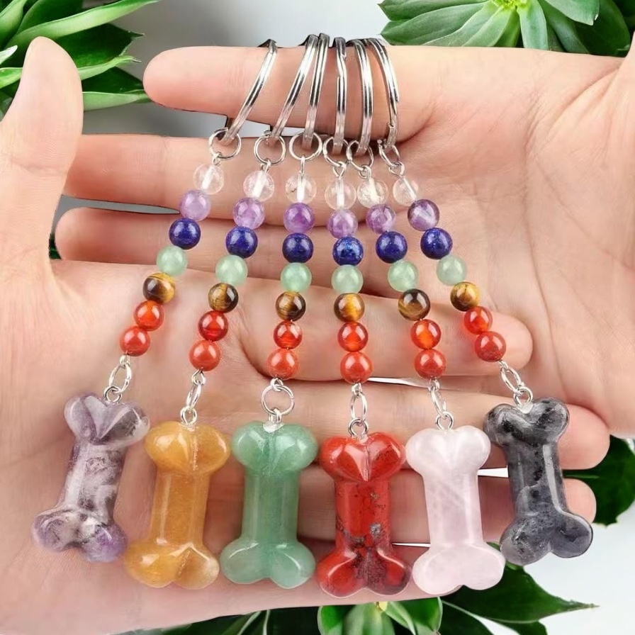 Chakra hundeben krystal nøglering Larvikit